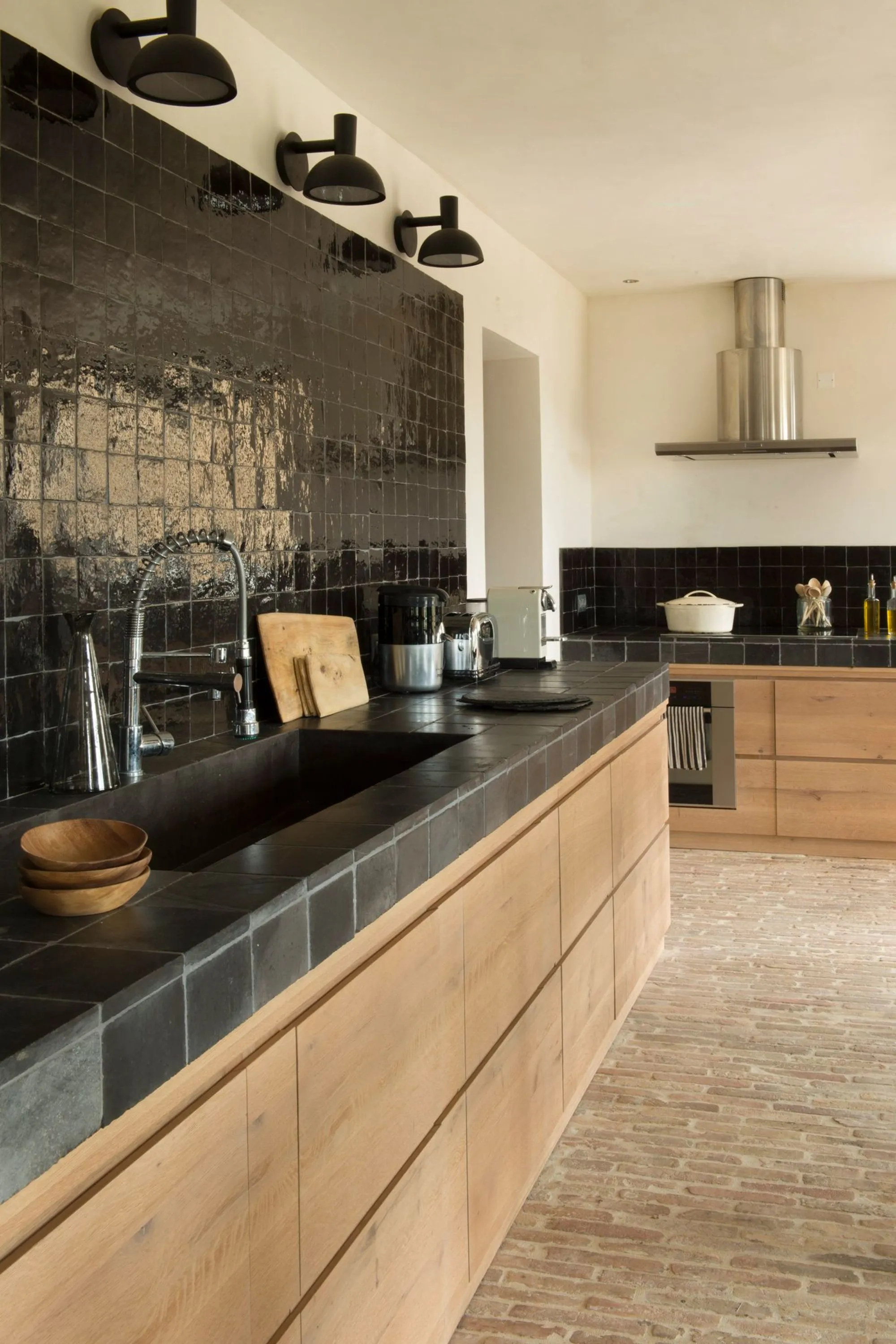 La cohabitation harmonieuse du noir et du bois dans la cuisine... pour une ambiance chaleureuse et élégante.
